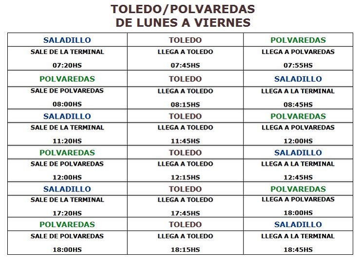 Horarios Mi Bus Saladillo-A.de Toledo-Polvaredas