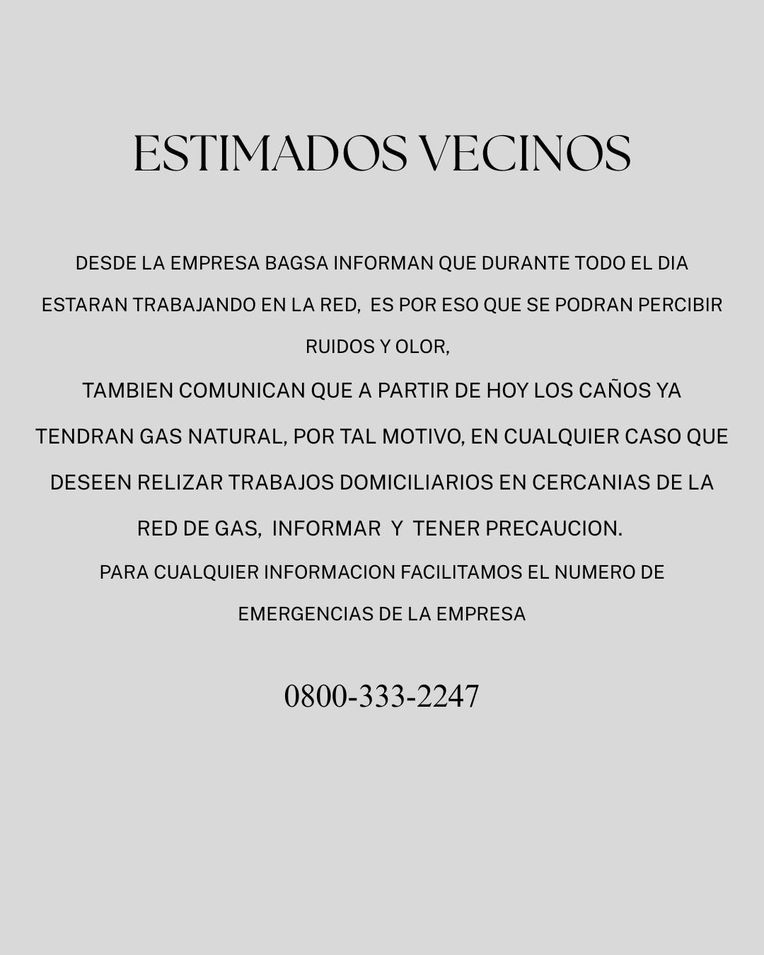 Red de Gas natural en Polvaredas – Aviso de BAGSA – Importante !!!