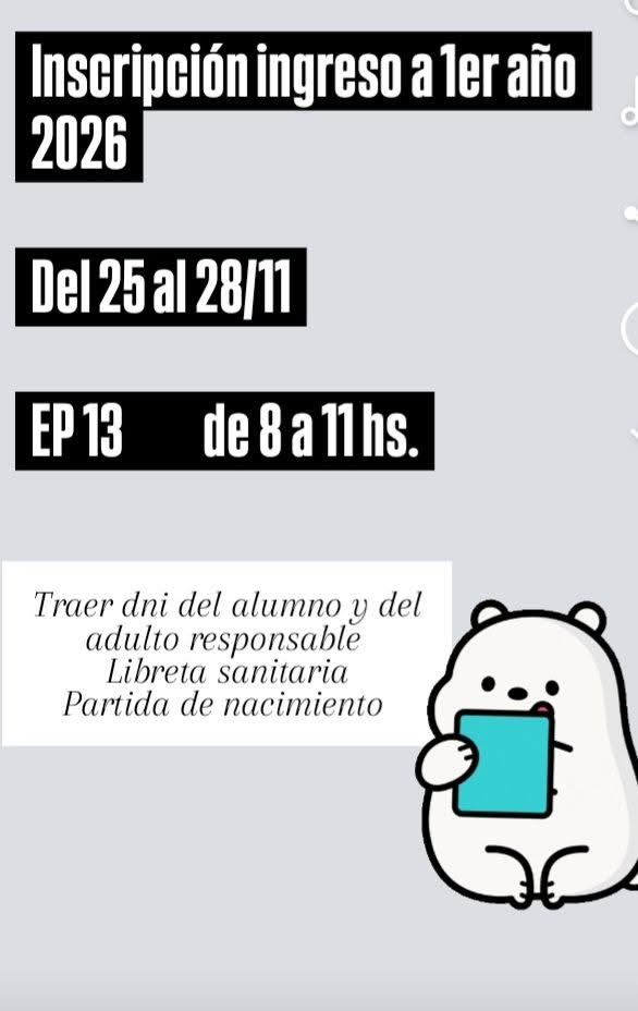 Inscripción 2026 en la escuela primaria 13, del 25 al 28/11