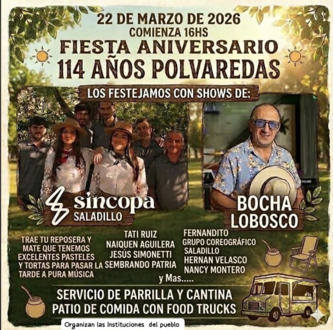 Domingo 22: festejo popular del 114° aniversario de Polvaredas