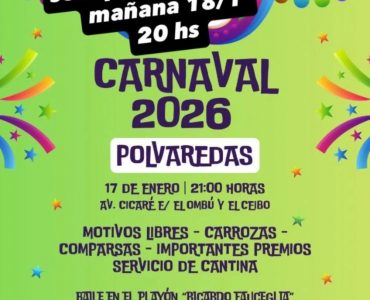 Este sábado, 21 de febrero, a las 21:30hs., los esperamos a compartir el carnaval en nuestro corsodromo. Aquí les presentamos a las postulantes al reinado del carnaval de Polvaredas, que será elegida en el baile que se llevará a cabo, luego del corso. Ellas son: Aylen Benedetti-Laura Macchiaroli -Micaela Dispascuale – Milagros Moscoloni -Sofia Pierdomenico -Analia Trillini – Meery Iovanovitz -Camila Ocampo – Natacha Beheran – Paula Burgos – Eva Cieza Gorosito – Carolina Marquez – Belen Tantarelli.