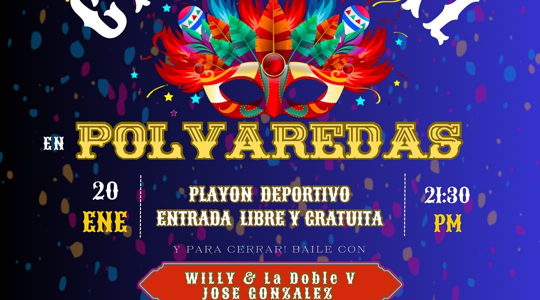 Veni a festejar el Carnaval con nosotros! Sábado 20 de Enero 21:30 hs. en el Playón Deportivo. Entrada Libre y gratuitaSúper premios para las mejores y más originales Carrozas y Disfraces Sueltos! Si querés anotarte comunícate a los teléfonos (02344)-493-078 / 493-164 Vení con tu silla! Servicio de Parrilla y CantinaFood TrucksCierre con Willy & …